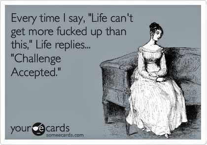 Can I just tell you that this was NOT on my list of things to deal with today? It's Clay's birthday and I have 6062 things to do before he gets home. Dealing with insurance on an issue that will most likely be labeled my fault (even though it so effing was NOT my fault) was not on that list of things to do. I have a house to clean and I have cupcakes to frost!
